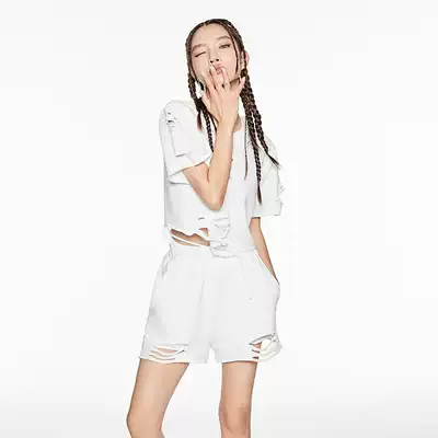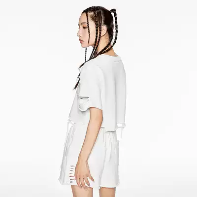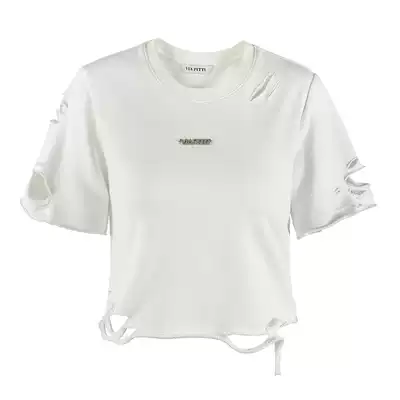 VIA PITTIT shirt Women summer personality destruction loose short sleeve top thin broken hole white cotton cotton Women's