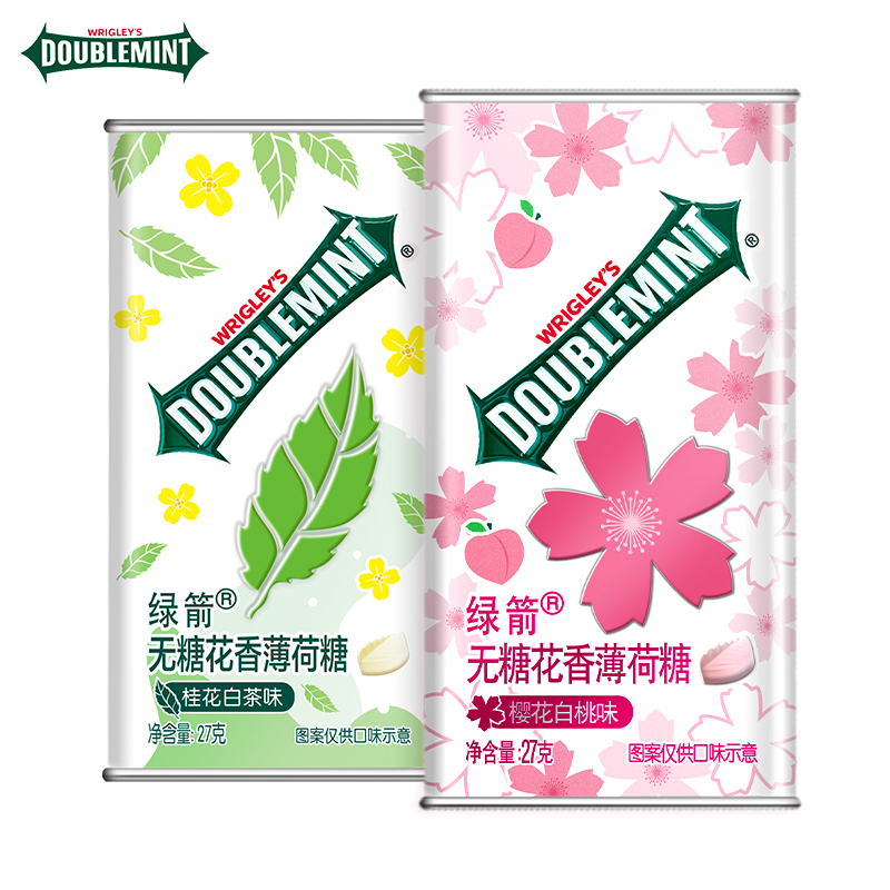 New product Green Arrow sugar-free mint candy bottled iron box cherry blossom fruit flower tea flavor chewing gum net red candy snacks