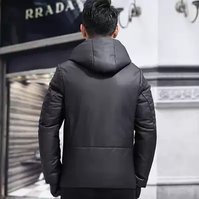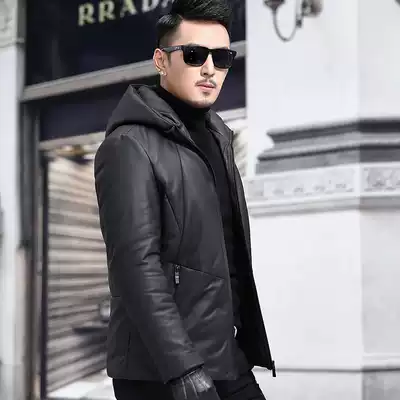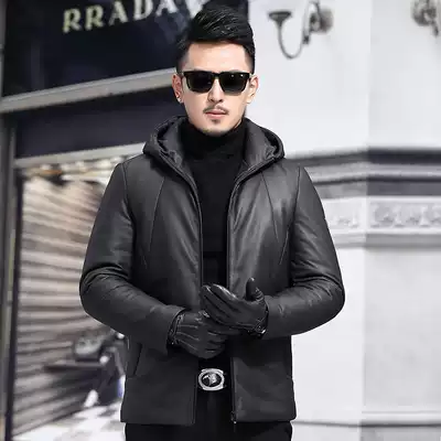 Leather down jacket men's hooded short slim Korean version of Haining leather jacket sheep leather jacket men's fur jacket