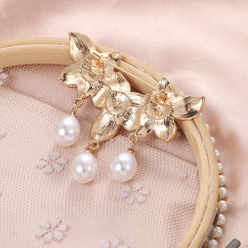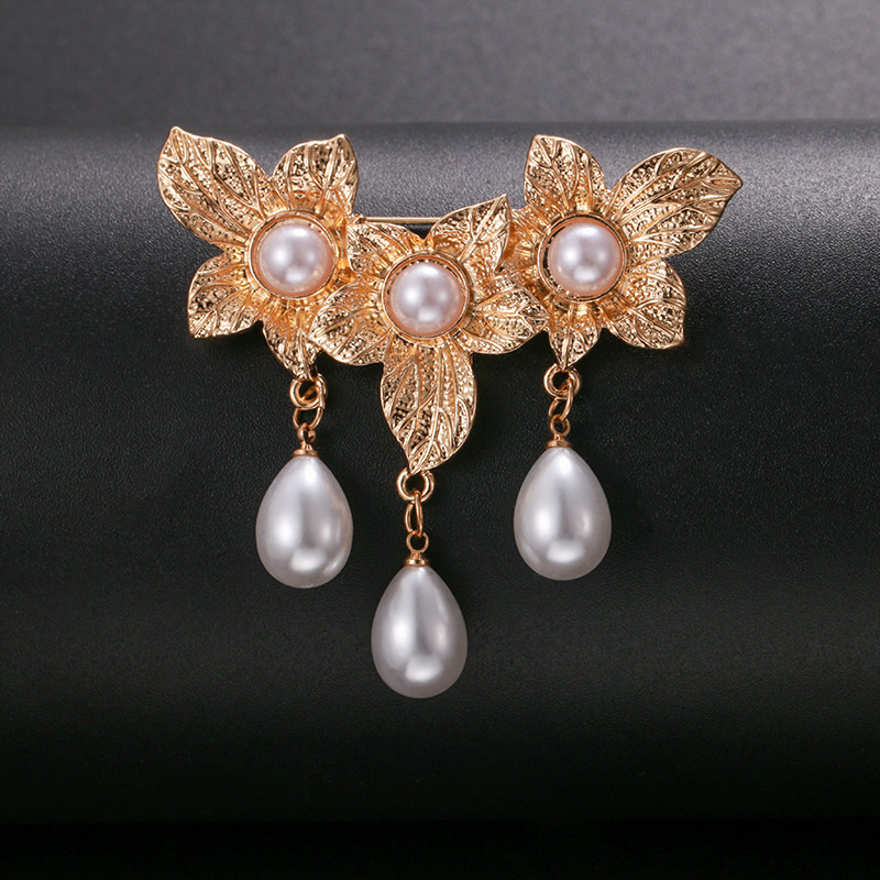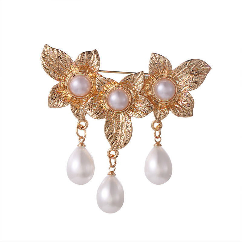 Retro-ins flow Supearl Don't pin Baroque style pendant brooch female neckline anti-walking light chest flower matching ornament