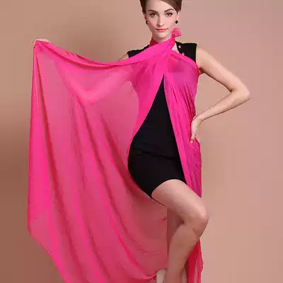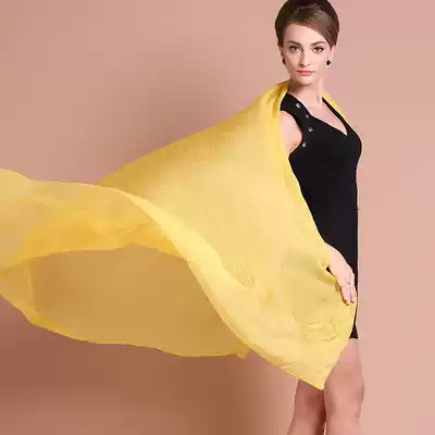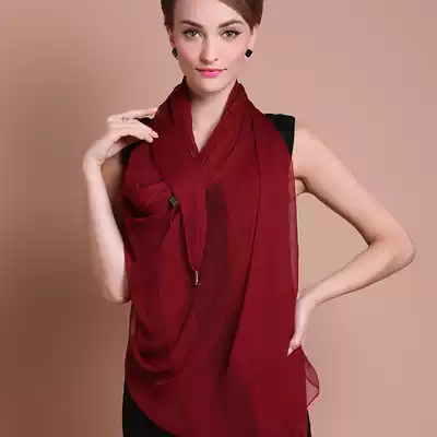 Silk scarf big square scarf women Summer thin print sunscreen neck high-end fashion big red scarf women solid color chiffon