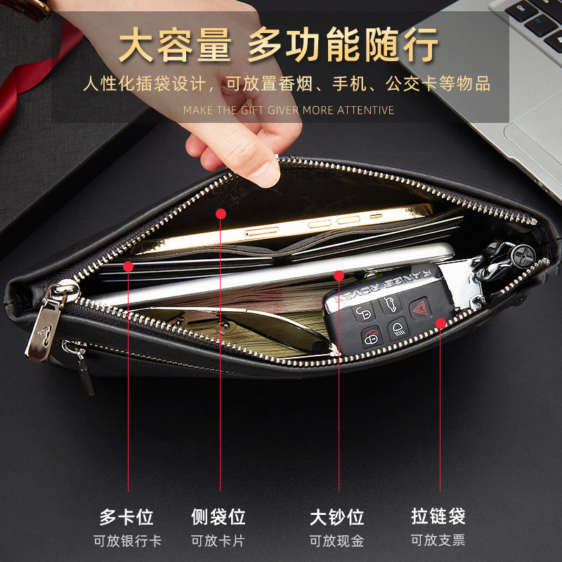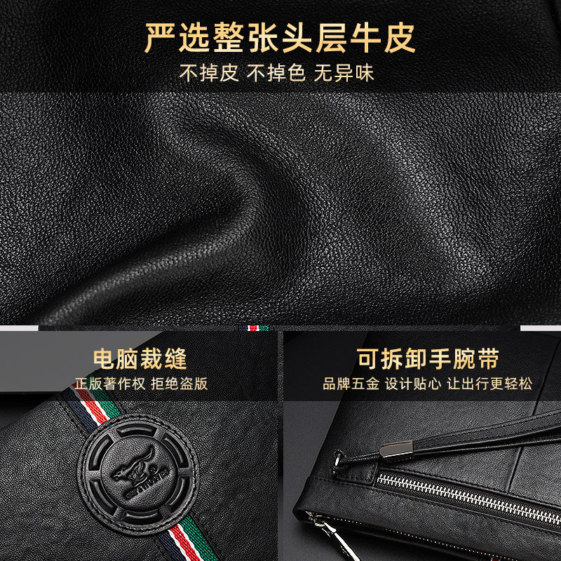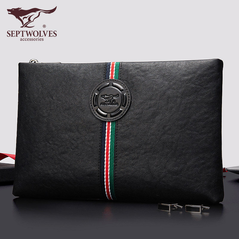 Seven Wolves Handbags Men's Bags Genuine Leather Large Capacity Business Casual Hands With Envelopes Bag Tide Card Clips New Soft Leather Bag