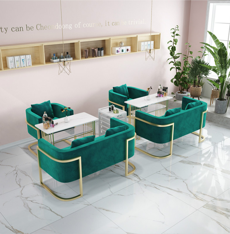 ins Nordic marble tennis red table iron art single double beauty medecine club table and chairs suit light and luxurious gold
