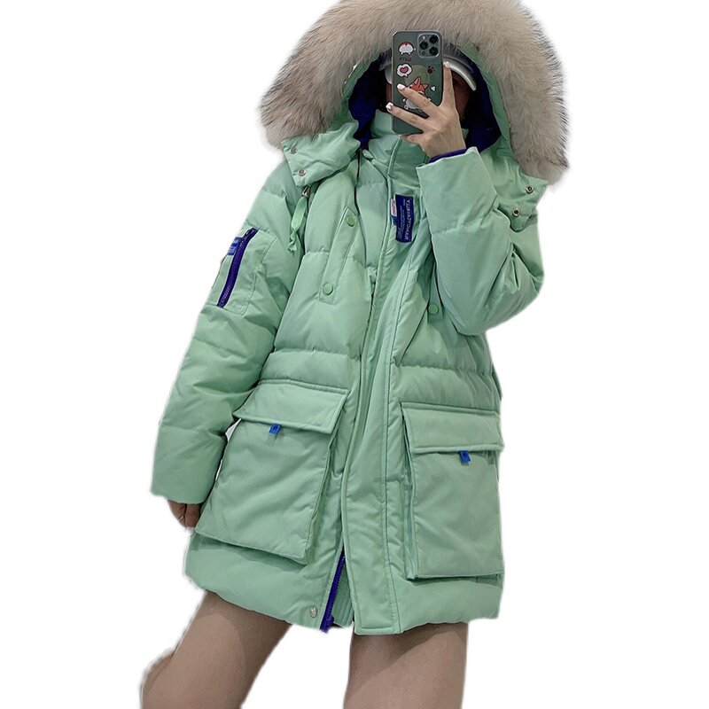 Green (no fur collar) yellow (no fur collar) black (no hairy collar) white (no hairy collar) green (real raccoon hair collar) yellow (real raccoon hair collar) black (real raccoon hair collar) white
