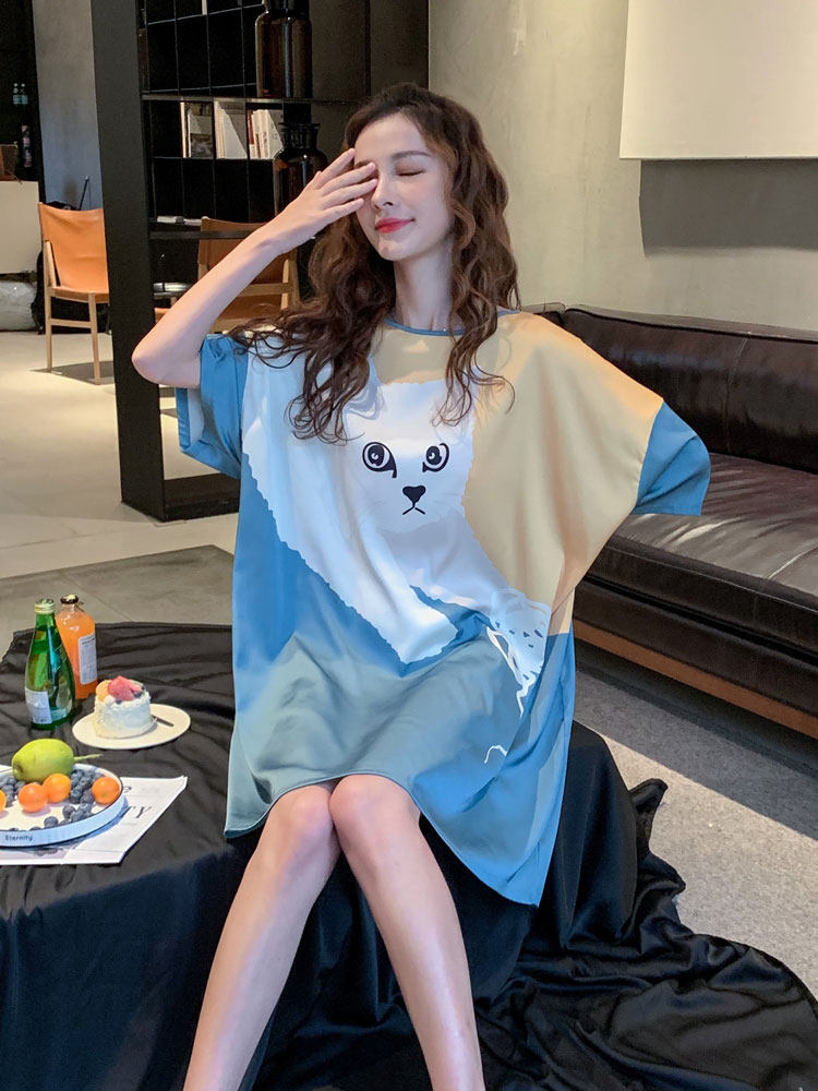 Cute kitty long dress version cute kitty short sleeve shorts version