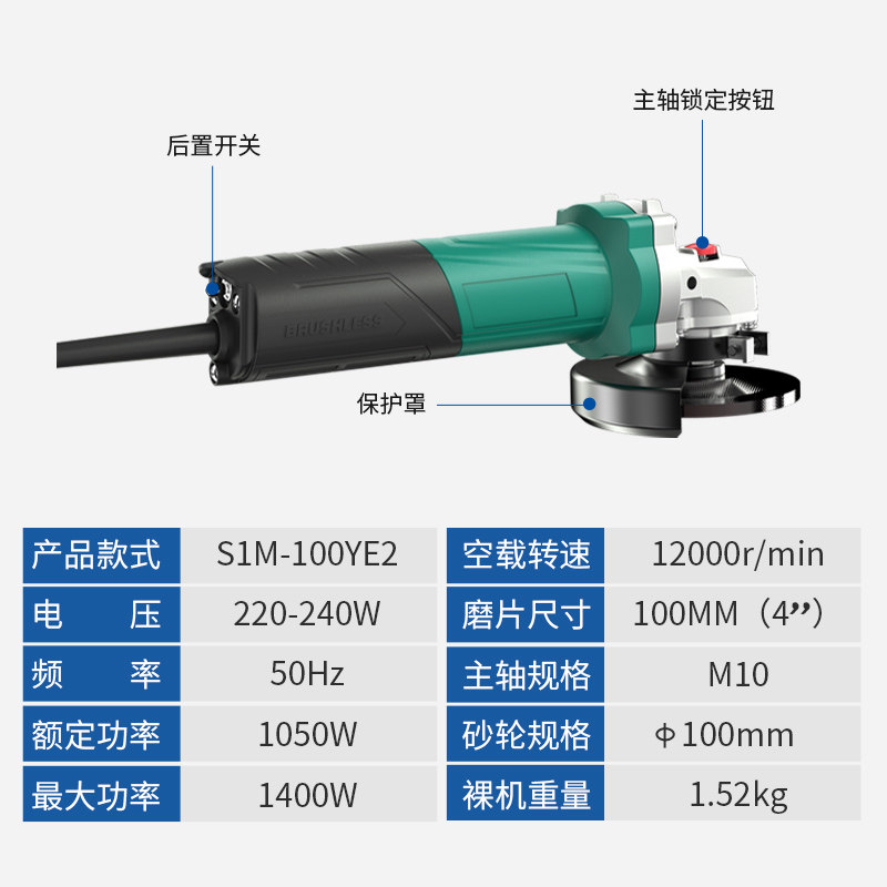 High power 1050W power tool 100 type frequency conversion brushless angle mill 220V polishing machine