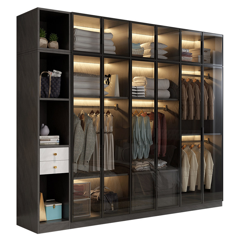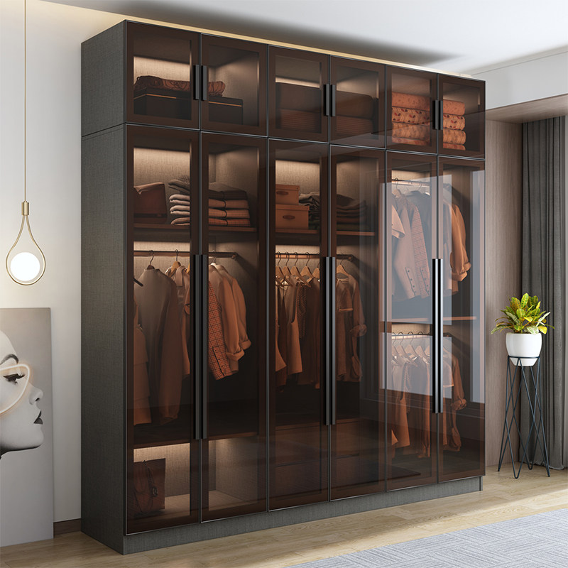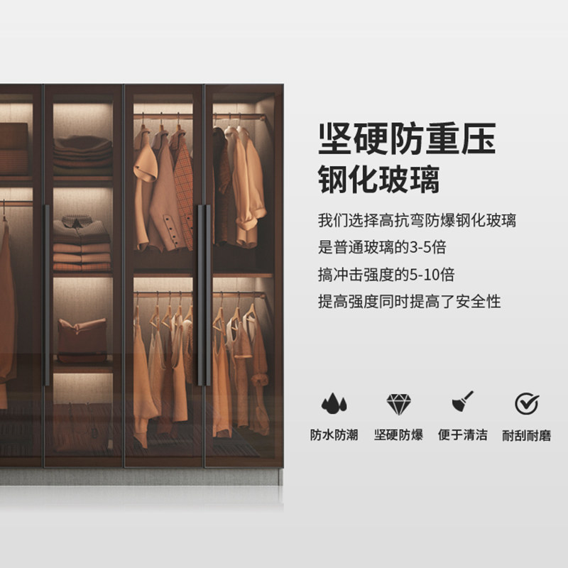 Light luxury solid wood wardrobe home bedroom whole house custom glass door storage cabinet casement door simple modern large wardrobe