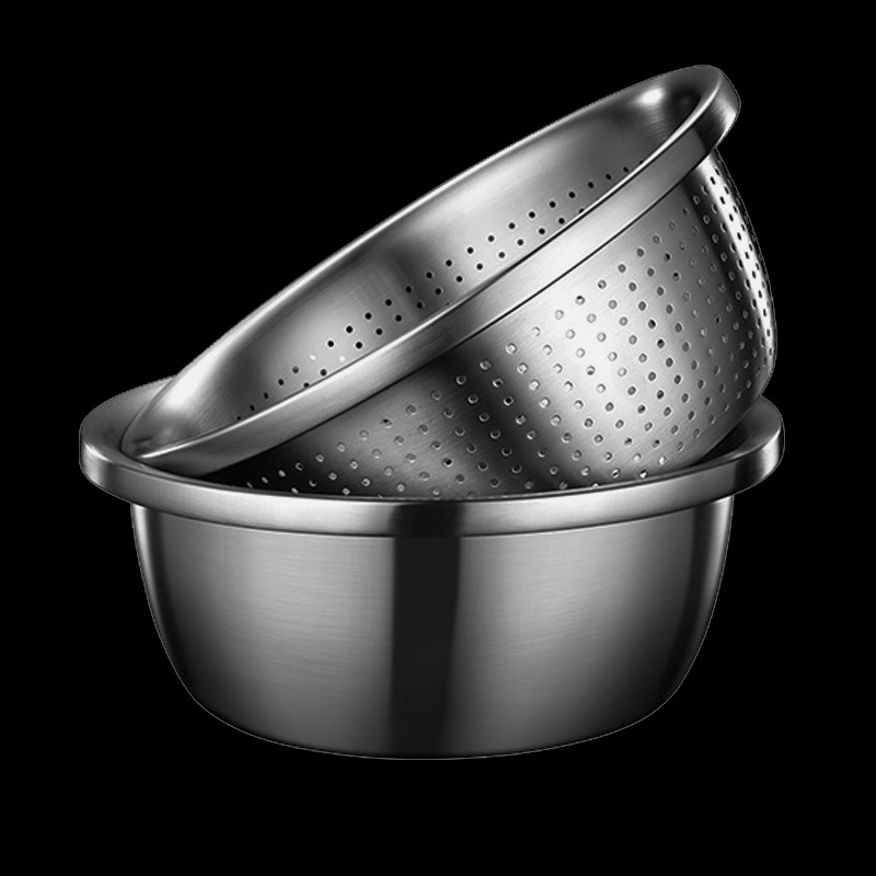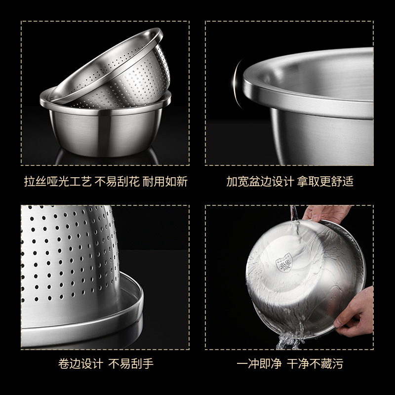 Food grade 304 stainless steel raspberry set thickened household kitchen beating eggs and washing dishes drain basket drain bowl male