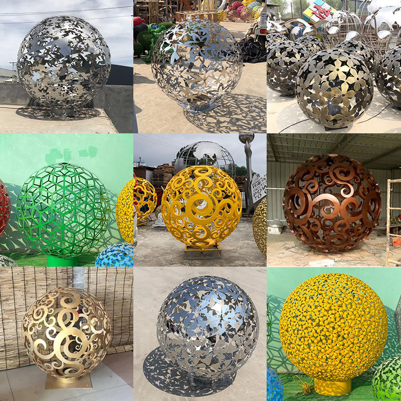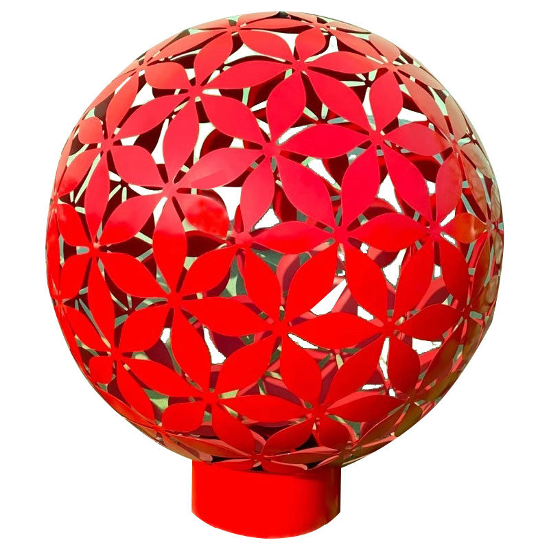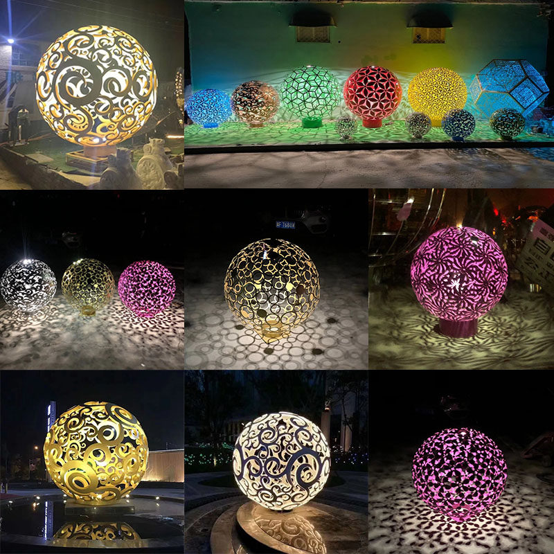 Stainless steel hollowed-out ball sculpted outdoor iron art luminous flower ball metal round real estate landscape decoration swing decoration