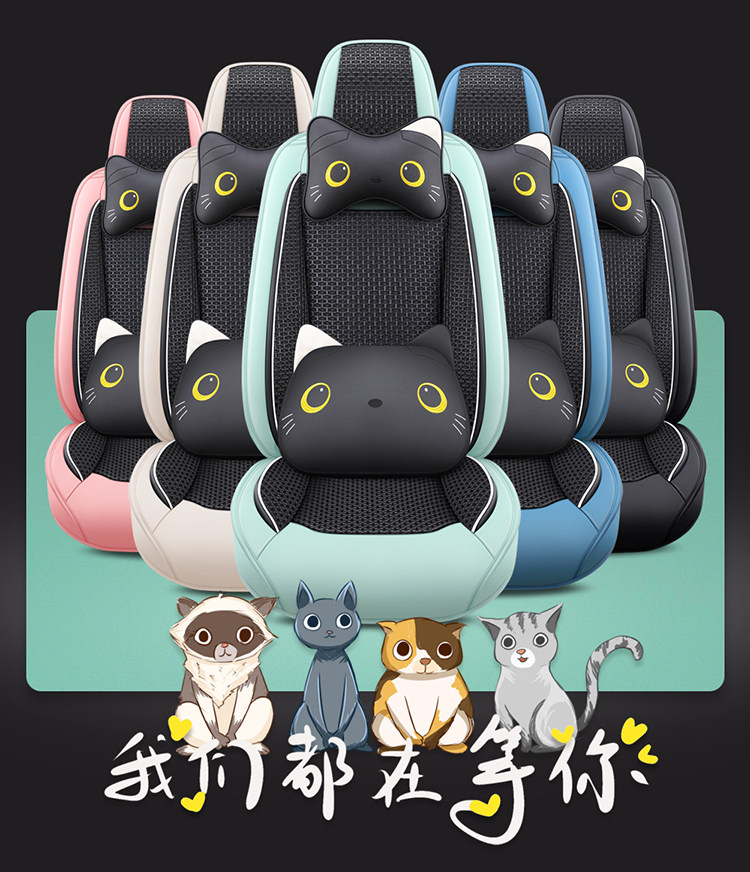 21 new summer ice silk car cushion fully surrounded car seat cover four-season universal seat cover cute cartoon seat cushion