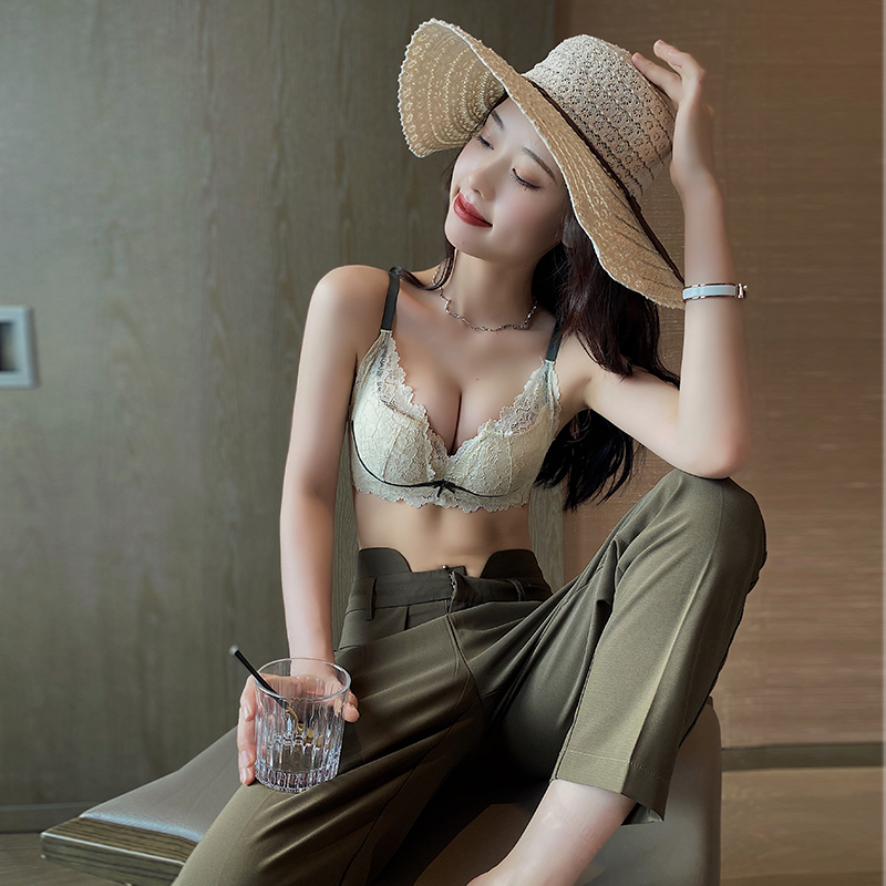 Small breasted without steel ring lingerie female poly-breasted anti-sagging pop-milk large bra suit ladies bra Summer