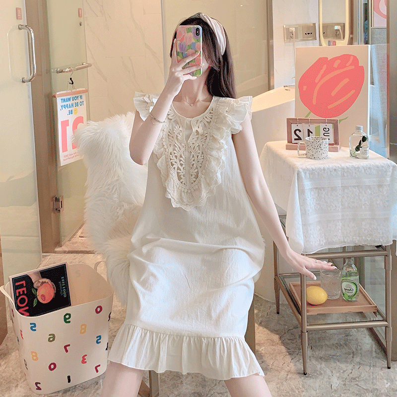 Sleeveless lace lace Lace Sleeping Dress Woman Summer Thin pure cotton All cotton 2022 New home Palace Princess Pyjamas Pyjamas Pyjamas