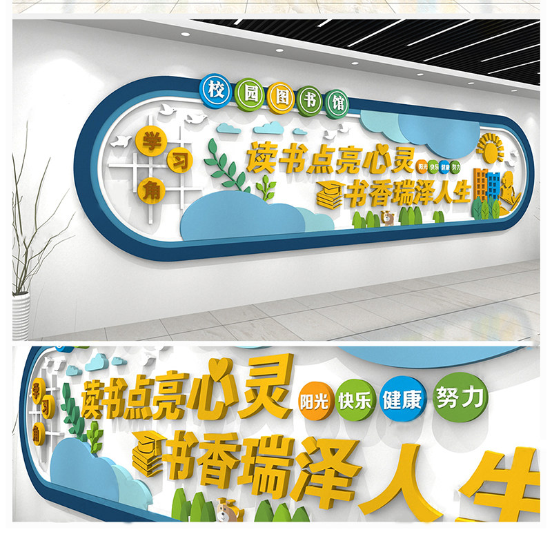 Campus culture wall stair wall stickers corridor decoration display board pvc Chevron board carving acrylic party building 3D three-dimensional