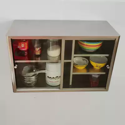 Stainless steel sliding door Bathroom wall cabinet wall cabinet Kitchen overall cabinet left and right sliding door bowl cabinet sliding door storage storage cabinet