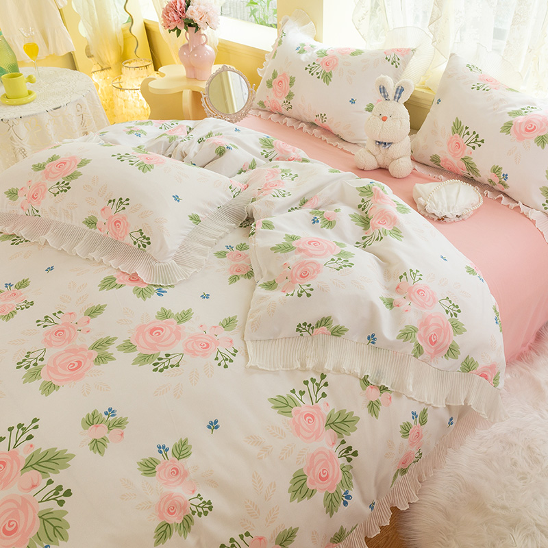 Net red ins wind lotus leaf edge floral lace princess wind bed four-piece retro pastoral bedding quilt cover sheet