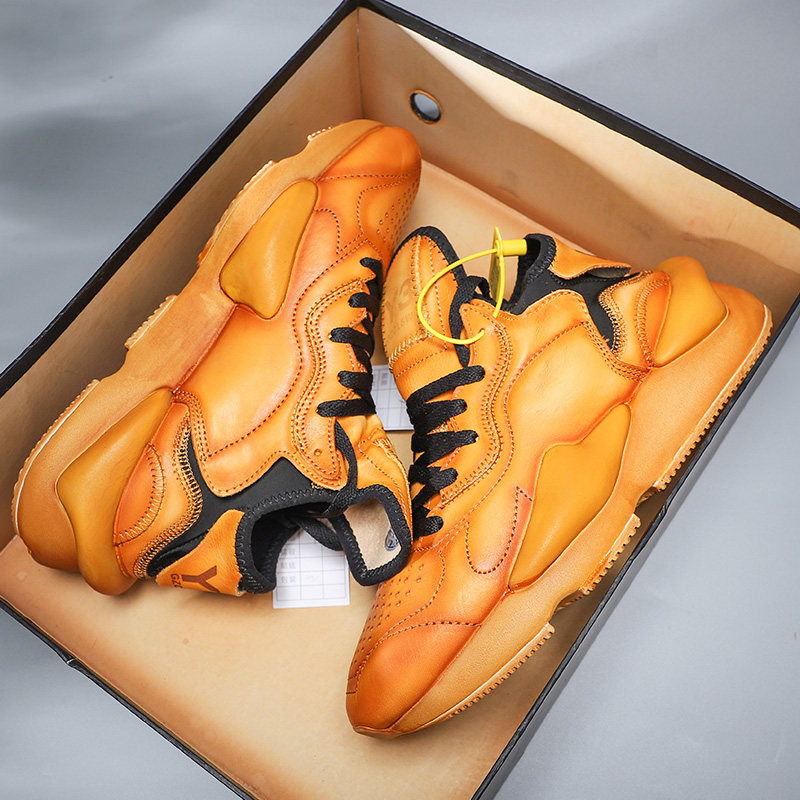 Niche original handmade retro Y3GZ genuine leather daddy shoes men's color rubbed old thick bottom trendy men's casual sports shoes