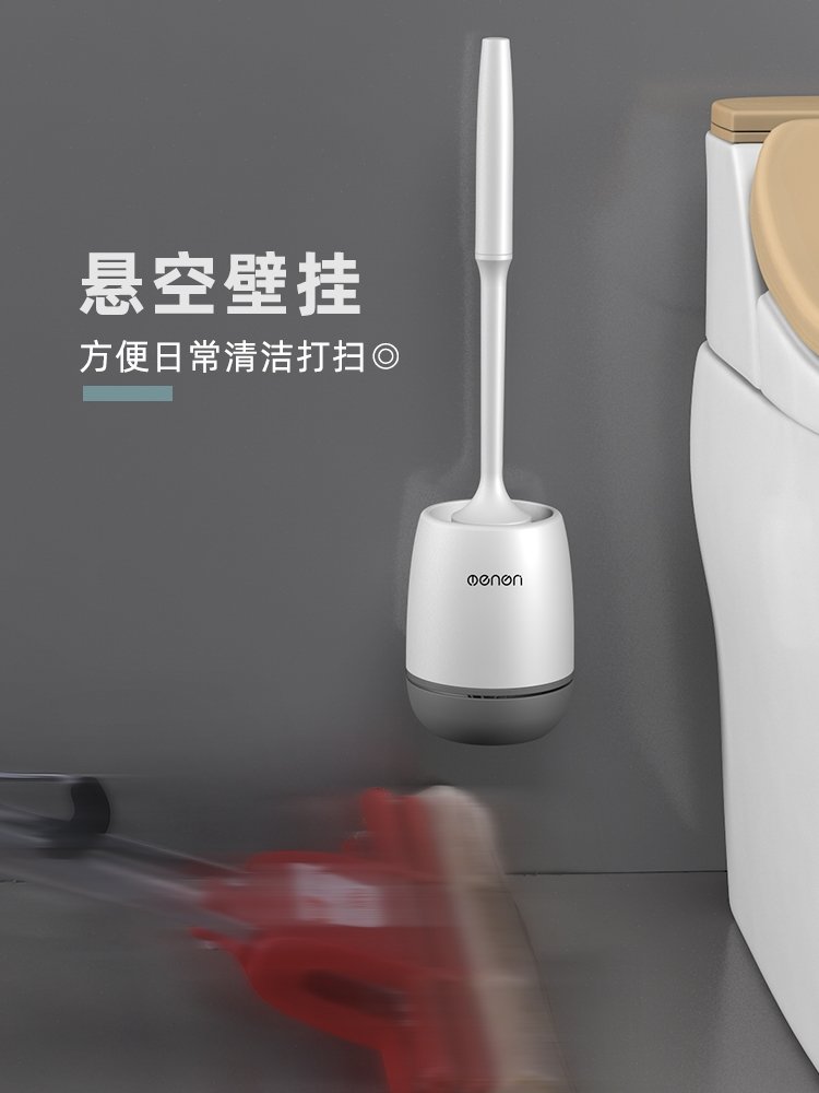 Japan imported MUJIΕ toilet brush without dead ends to wash the toilet brush wall hanging long handle silicone brush wall hanging household - Taobao