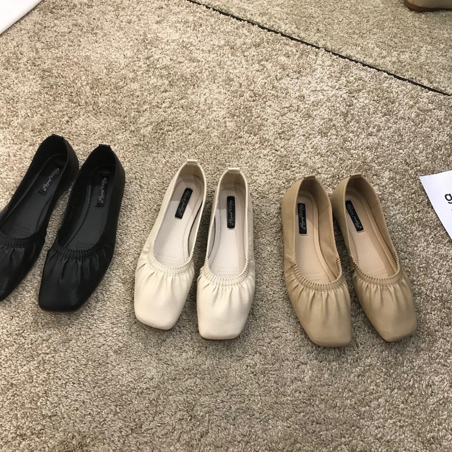 ITSK shoes women's single shoes square toe shallow soft bottom flat commuter women's shoes Peas shoes