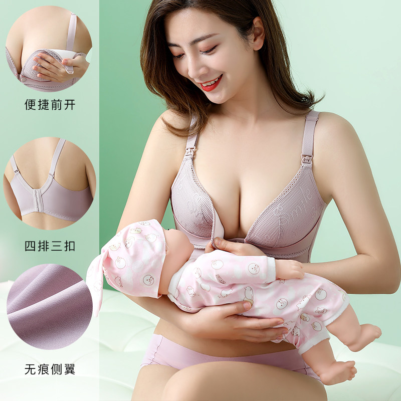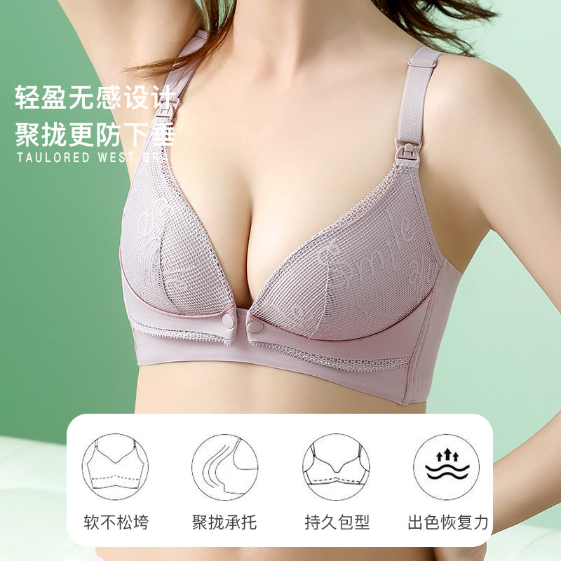 Lactation Bra Postnatal Pregnant Women Underwear Women's Underwear Pregnancy Coalestation Anti-Sagging Front Open Button Lactation Bra Comfort Thin