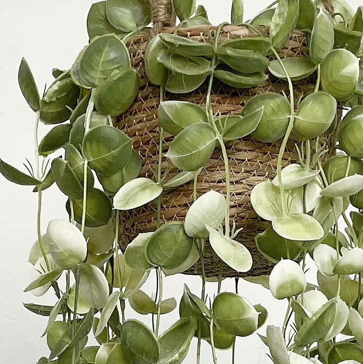 Nordic ins-emulated green plant vine-knitted hanging-hook-style flower-pot wall-mounted decoration