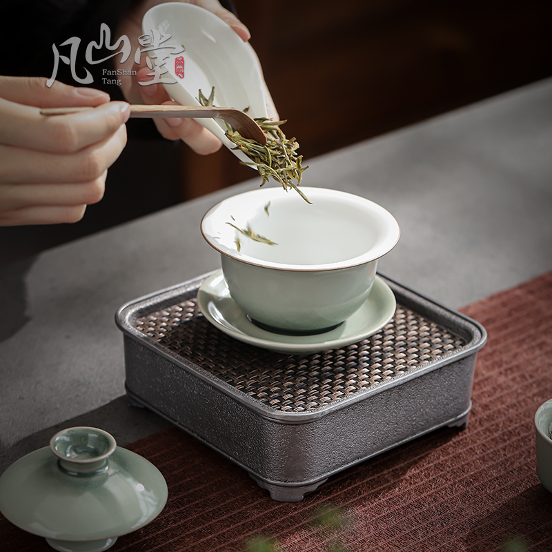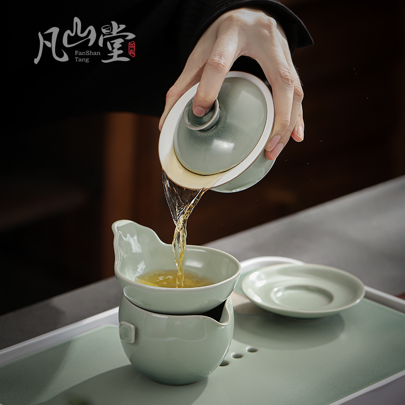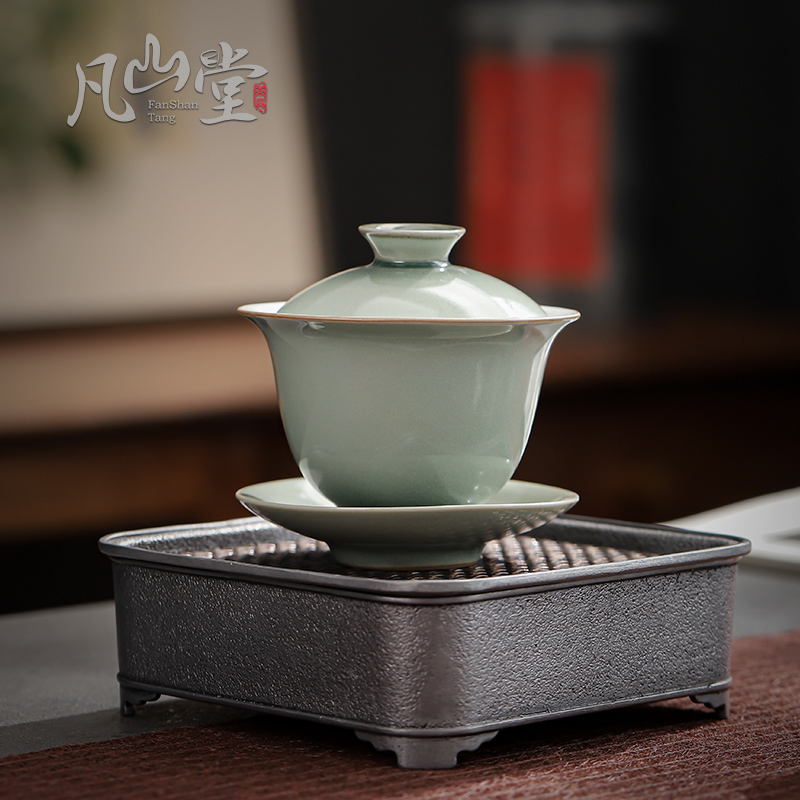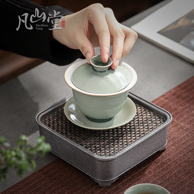 Fan Shantang Pine Green Glaze Pottery Porcelain Home Tea Bowl Tea Bowl 3-only cover Bowl Kung Fu Tea with Anti-scalding Big Number of Tea Bowl