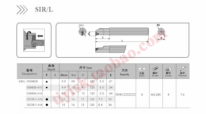 Sanhan knife rod inner thread variable diameter knife rod size head wire cutter SNR0008K08 10K11 12M11-A16