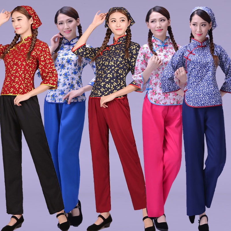 White Bottom Blue Flowers Blue Pants Send Headscarf White Bottom Pink Pants For Headscarf Red Bottom White Flowers Blue Pants Deliver Headscarf Big Red Blouses Black Pants Blue Bottom White Flowers Black Pants Apron With Headscarf White Bottom