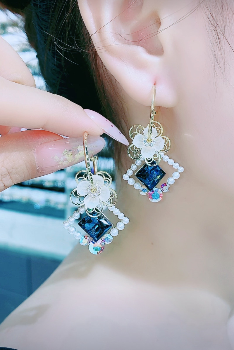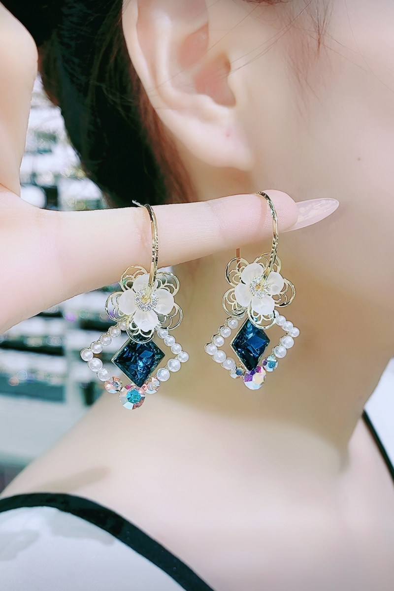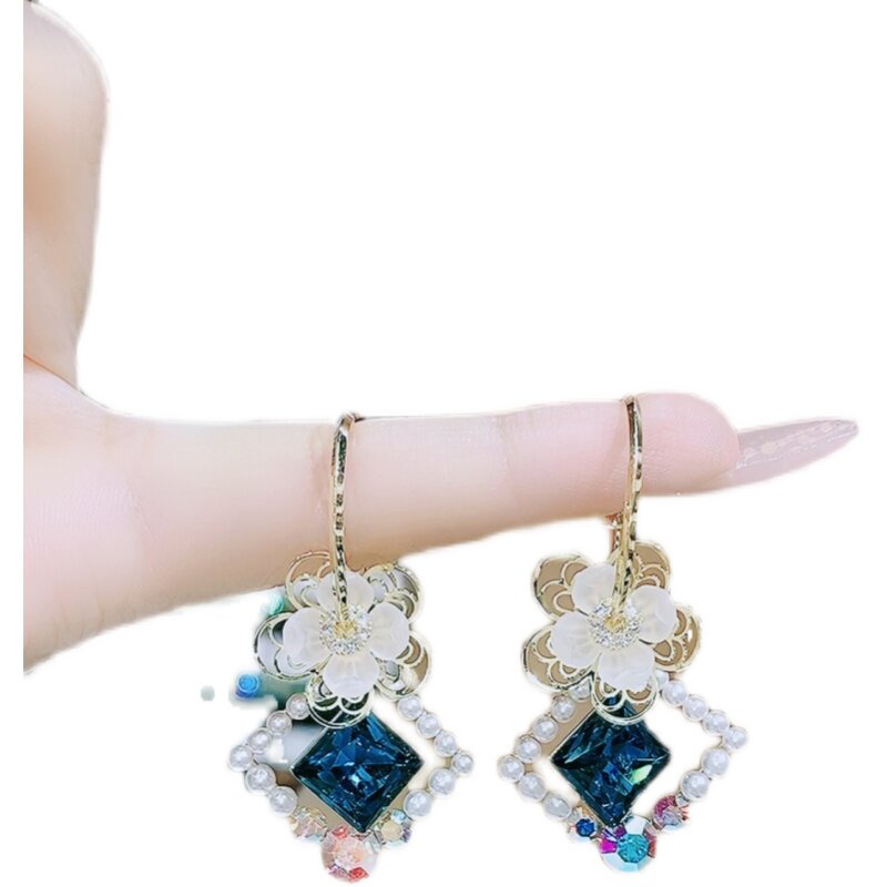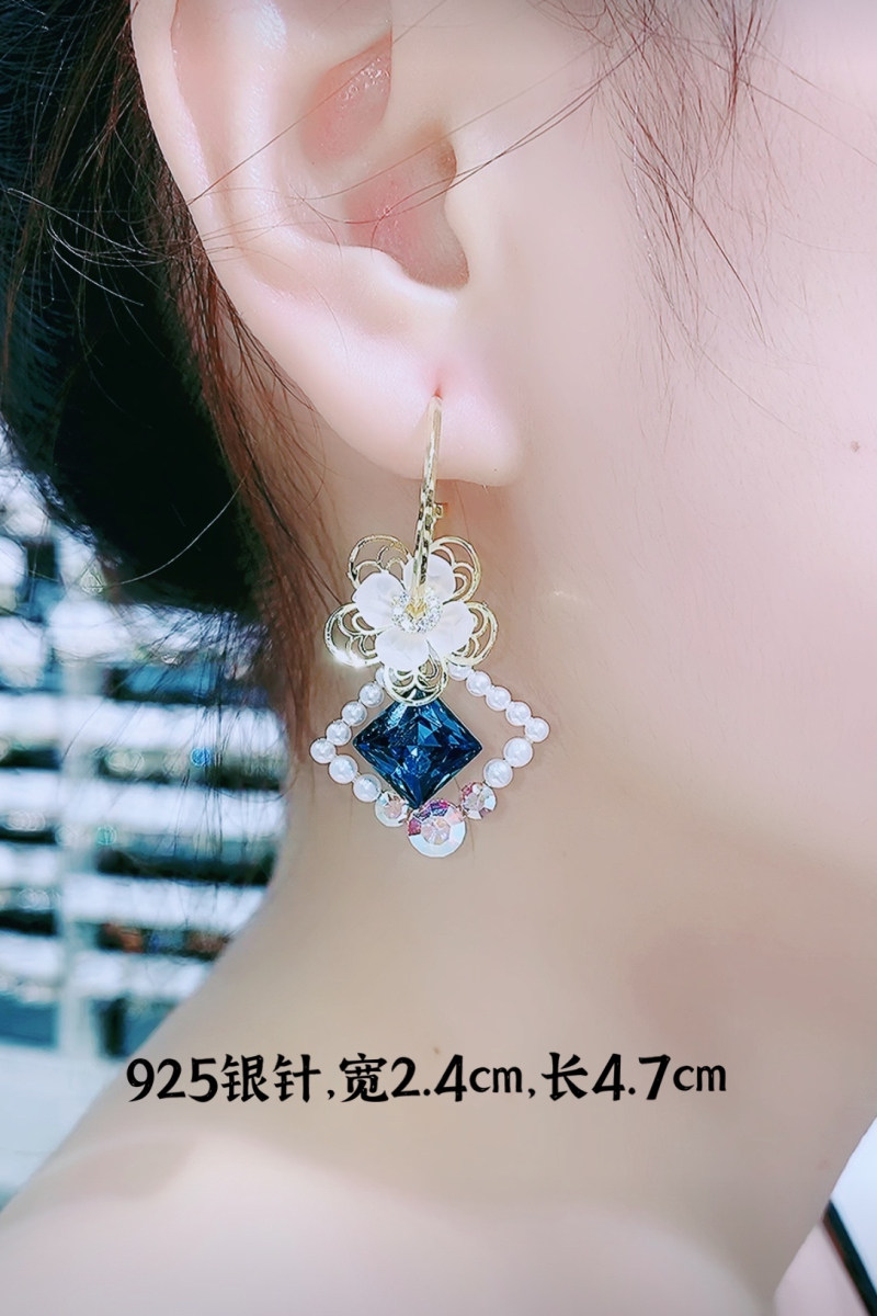 Dingli Flower Earring 2021 new tide Korea temperament network red pure silver needle advanced crystal pearl ear