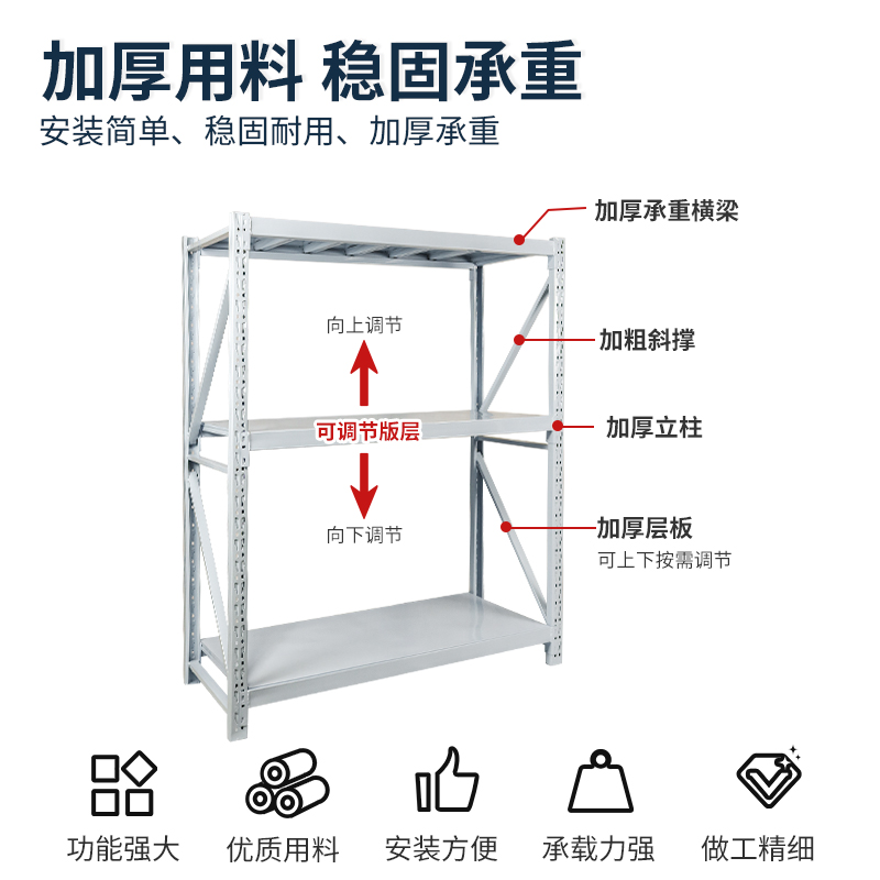 Three-layer shelving shelf Home Shelf Storage Floor Shelf Hardware Express Shelf Adjustable Warehouse Warehousing Shelf