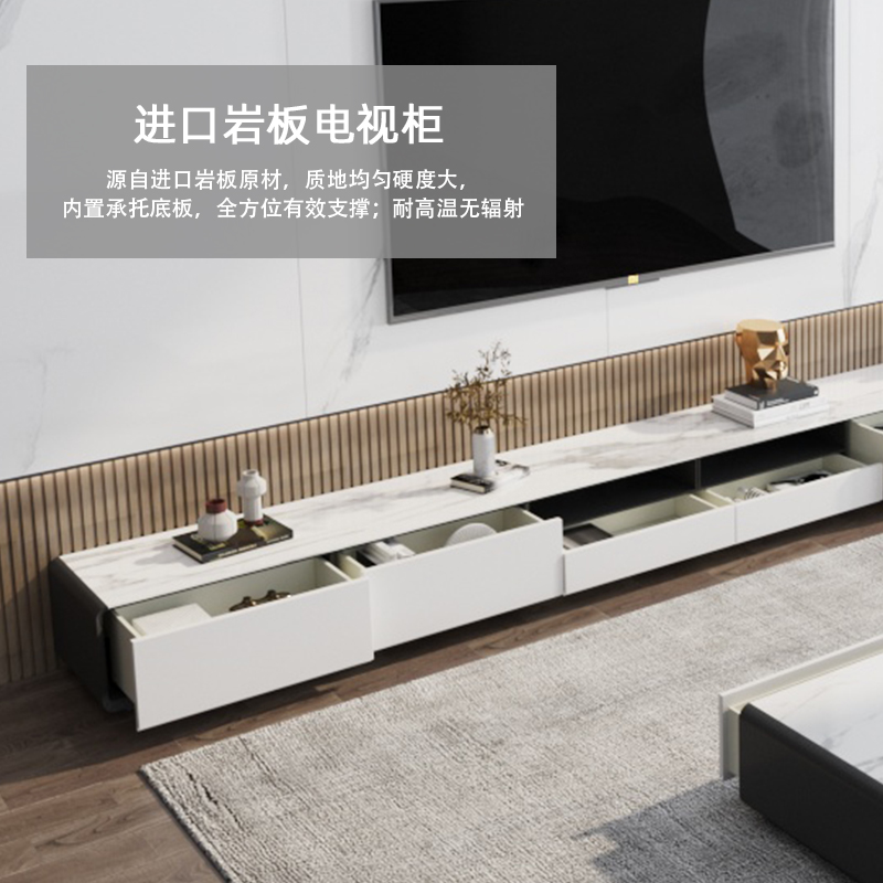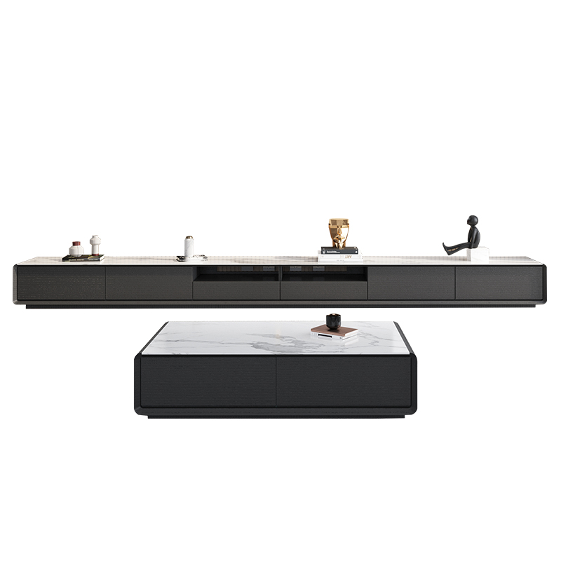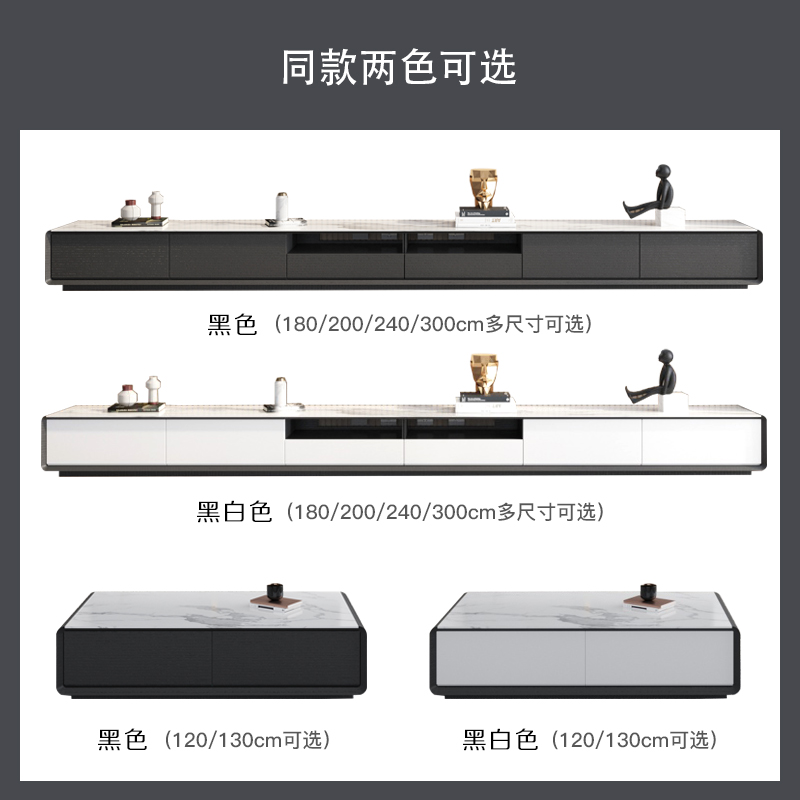 TV cabinet coffee table combination black and white slate Nordic size living room hollow simple modern floor cabinet