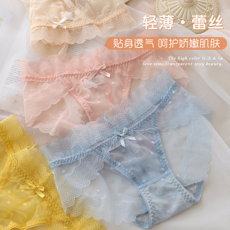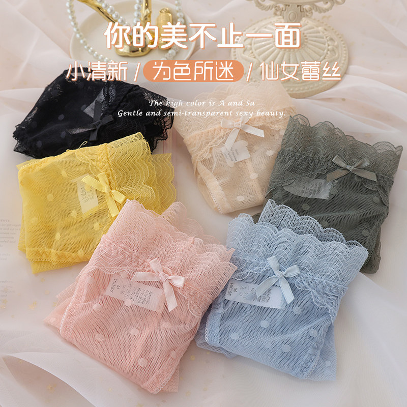 Pure desire wind lace panties women's pure cotton crotch antibacterial seamless sexy girls thin section breathable low waist triangle shorts