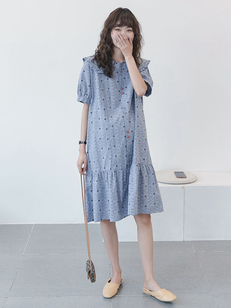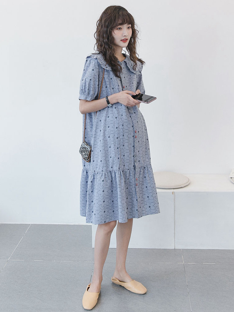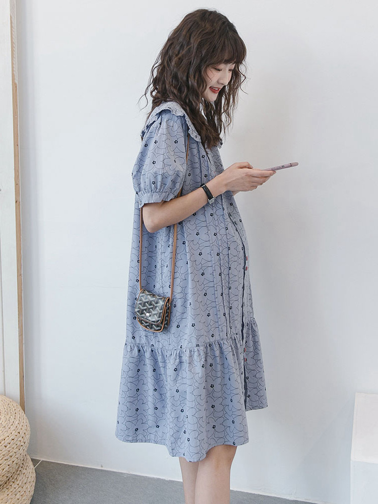 Japanese pregnant women's summer dress 2022 fashion foreign style thin breastfeeding dress loose large size small fresh maternity dress