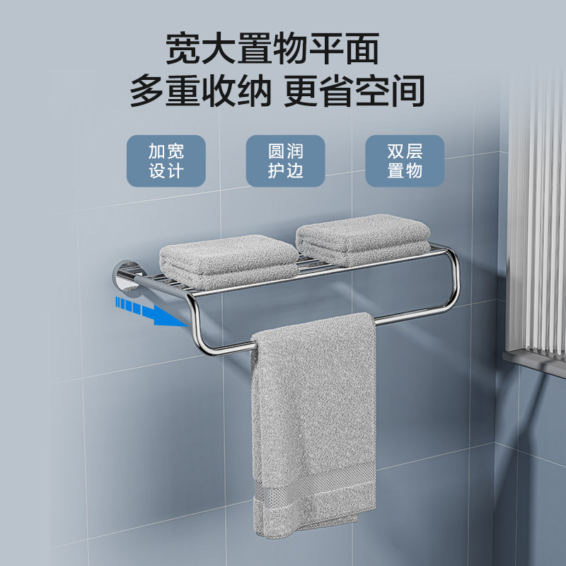 Jiumu towel rack 304 stainless steel double rod towel rack bathroom pendant rack 939461