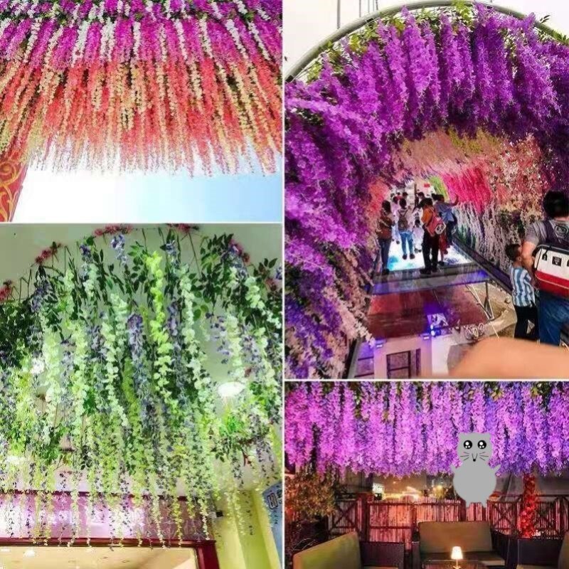 Wall decoration simulation wisteria violet wedding decoration blocking winding suspended ceiling indoor plastic vine plants