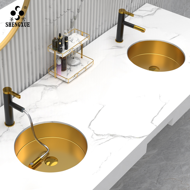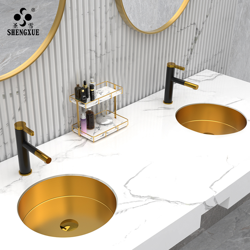 Light and luxurious stainless steel golden stage tub bar Minjuku bar Round Flush Washbasin Makeup Room Washbasin