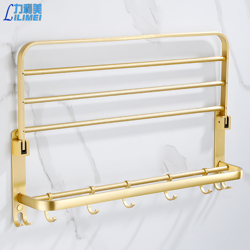 Light Extravagant Golden Bathroom Hair Towel Rack Suit Bath Towels Rack-Free Toilet Shelf Wall-mounted Makeup room Nordic