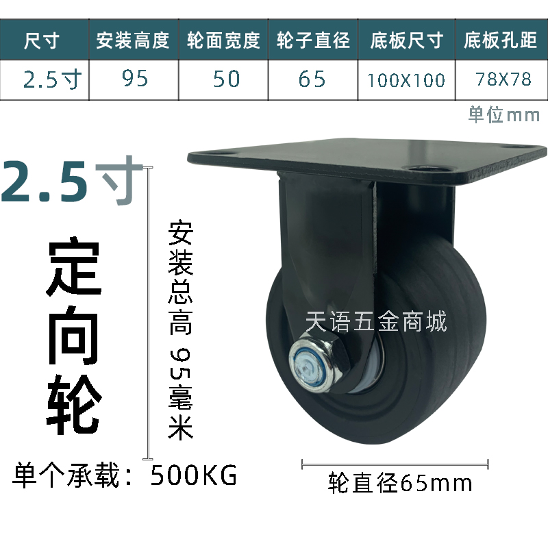 2 5-inch heavy universal nylon castors CSHN65-N low centre of gravity jumbolid industrial 78X78 hole replacement rollers
