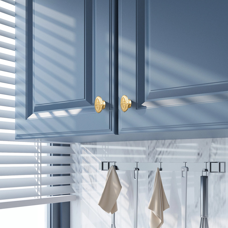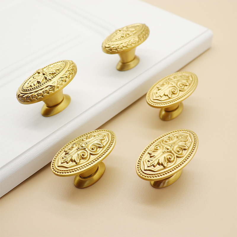 American-style European-style cabinet door handle brass drawer wardrobe modern minimalist light luxury single-hole golden pure copper door handle