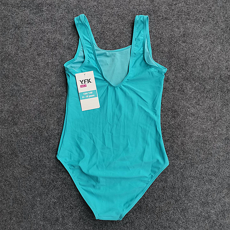 Foreign trade Children's swimsuit girl to be connected to CUHK child 7-14 year old pure color letter training triangle sunscreen speed dry swimsuit
