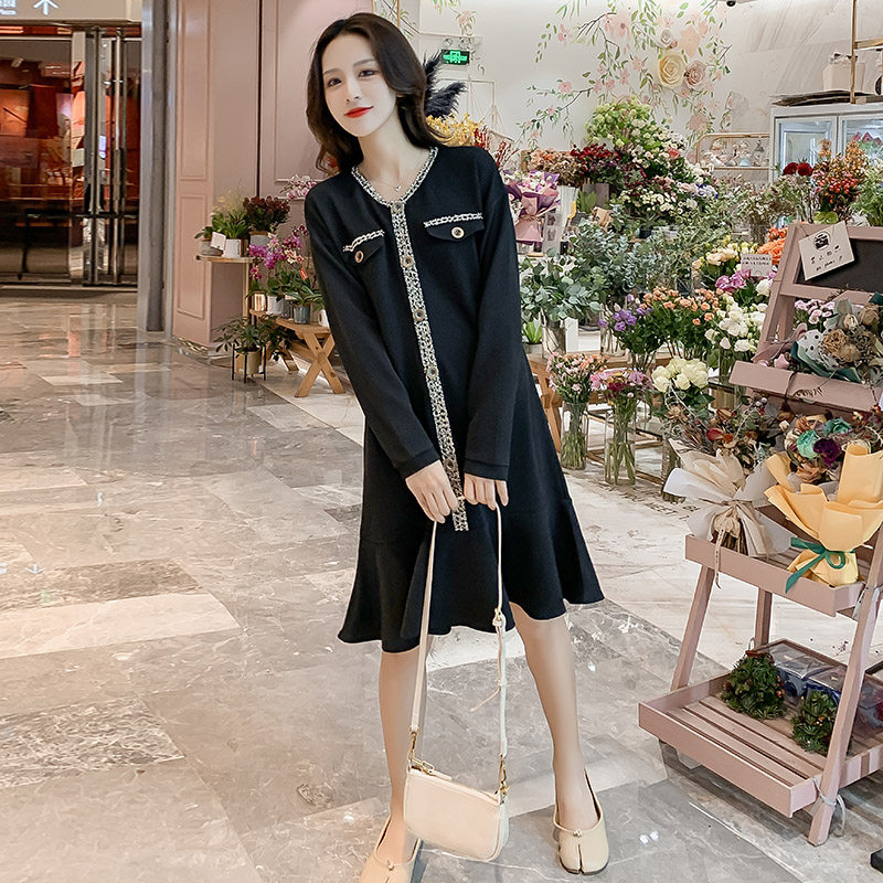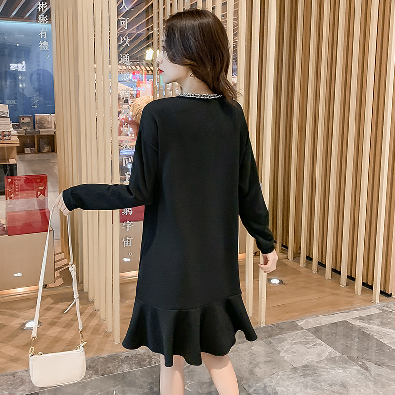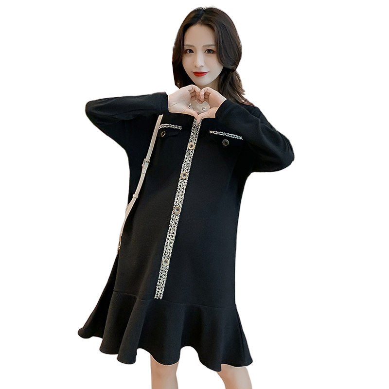 Pregnant Woman Autumn Dress Dress Dress Fashion Small Balsamic Wind Big Code Breastfeeding Skirt Autumn Long Sleeves External Wear Thickened Pregnant Woman Skirt