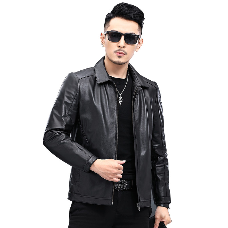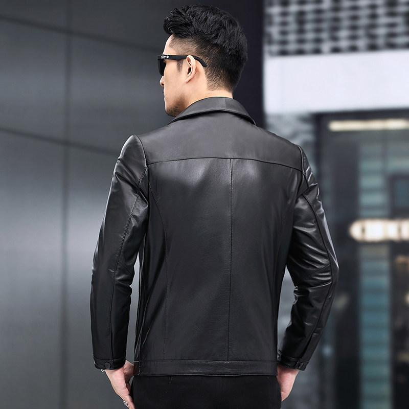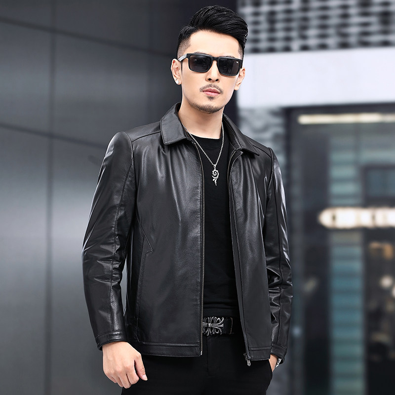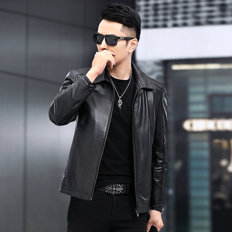 Henning genuine leather leather clothes men's single leather short section Loose Head Layer Fetal Bull Leather Turnover Locomotive Leather Jacket Spring Autumn Season Jacket