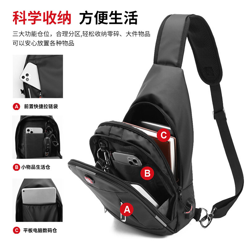 Swiss chest bag men's summer sports trendy brand waterproof men's messenger bag 2021 new lightweight trendy small backpack