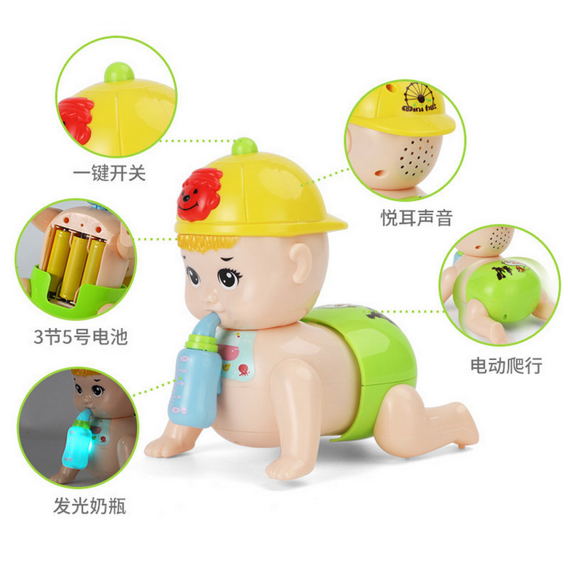 Small scale learning doll, 2 AA batteries, medium size learning doll, feeding bottle, 2 AA batteries, medium learning doll, 3 AA batteries, large learning doll feeding bottle, 3 AA batteries, enlarged