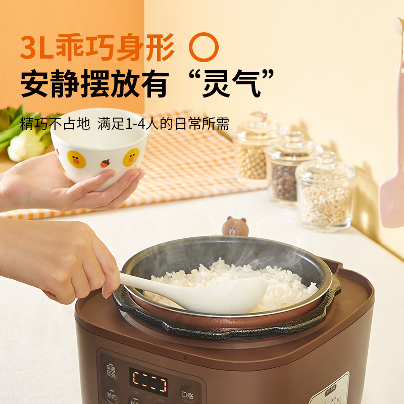 Jiuyang Electronic Pressure Cooker Home High Pressure Pan Mini Mini Electric Meal 3 Liters Small 2 People Multifunction Brown Bear Cute Pan
