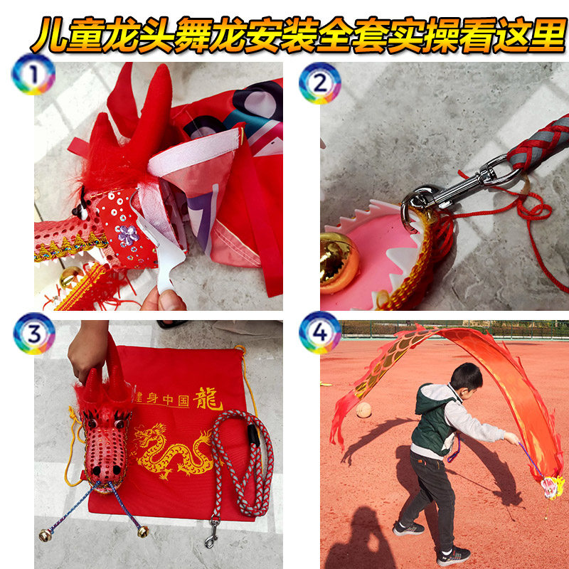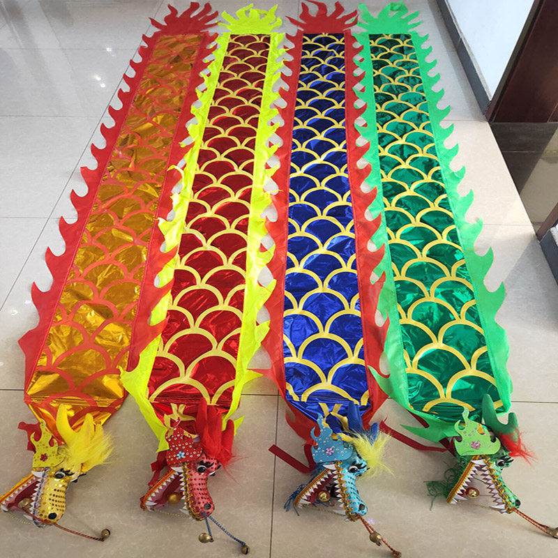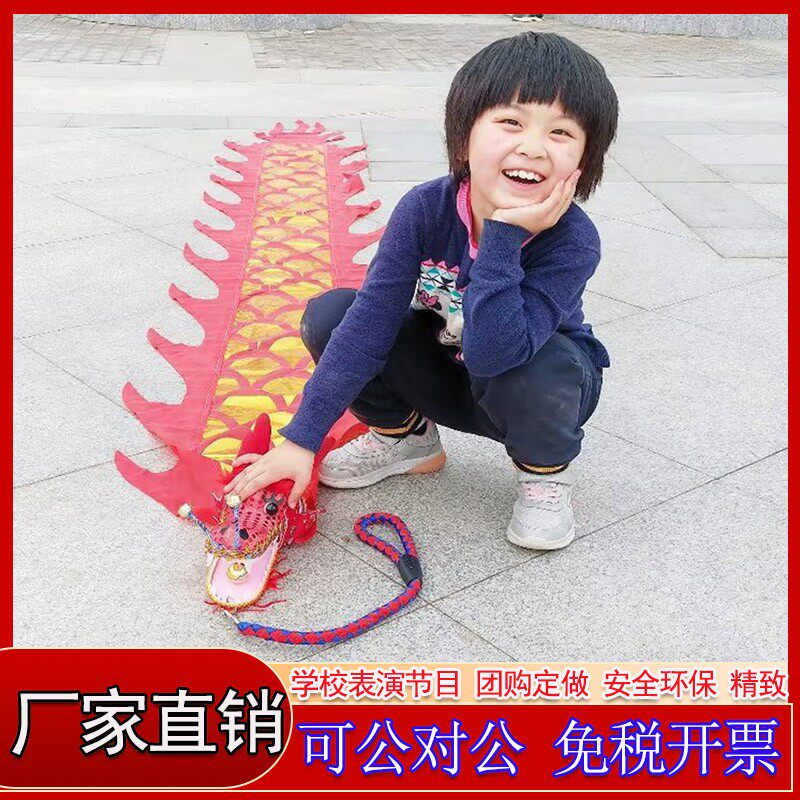 Children's dragon dance square outdoor fitness dragon belt throwing ribbon playing dragon head bronzing cloth dragon with lamp traditional program props