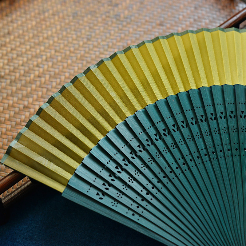 China Wind Breeze Layer Green Ancient Wind Bamboo Folding Fan Children Style Pure Color Summer Carry-on and Dancing Fan-style Dance