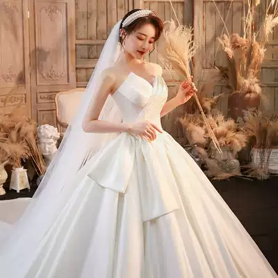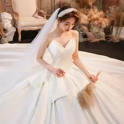 Bandeau satin wedding dress 2021 new court style high-end sense large trailing bride main yarn summer temperament female Korean style
