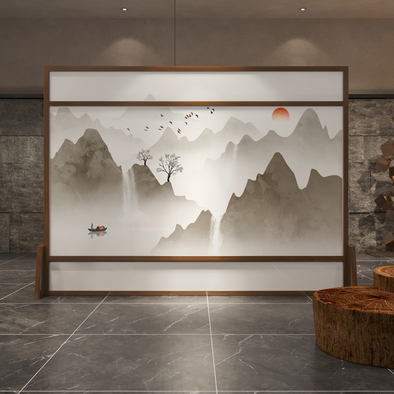 New Chinese Screen Partition Living Room Background Decoration Mobile Minima Villa Tea Room Hotel Office Shelter Screen