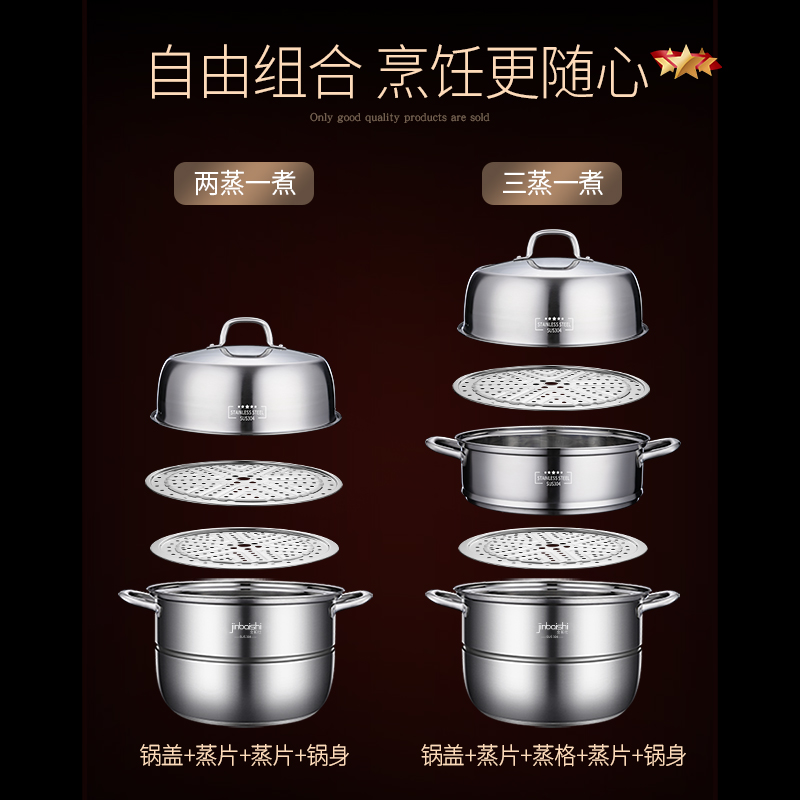 Gold-Zun 304 steel three-layer steamer (lid steam-cage steaming sheet all tethick 304 steel) Gold revered classic 304 steel three-layer steamer (lid steamer steamer with a special thickness of 304 steel) Gold Zun 30