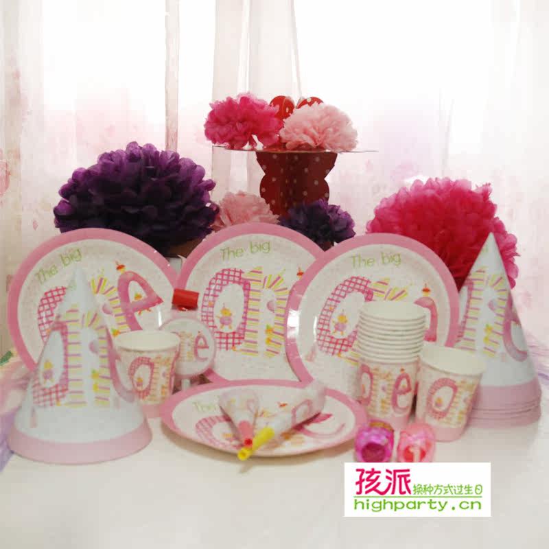 1 year old girl birthday dining room table top decoration one year old boy baby party disposable tableware paper cup party hat